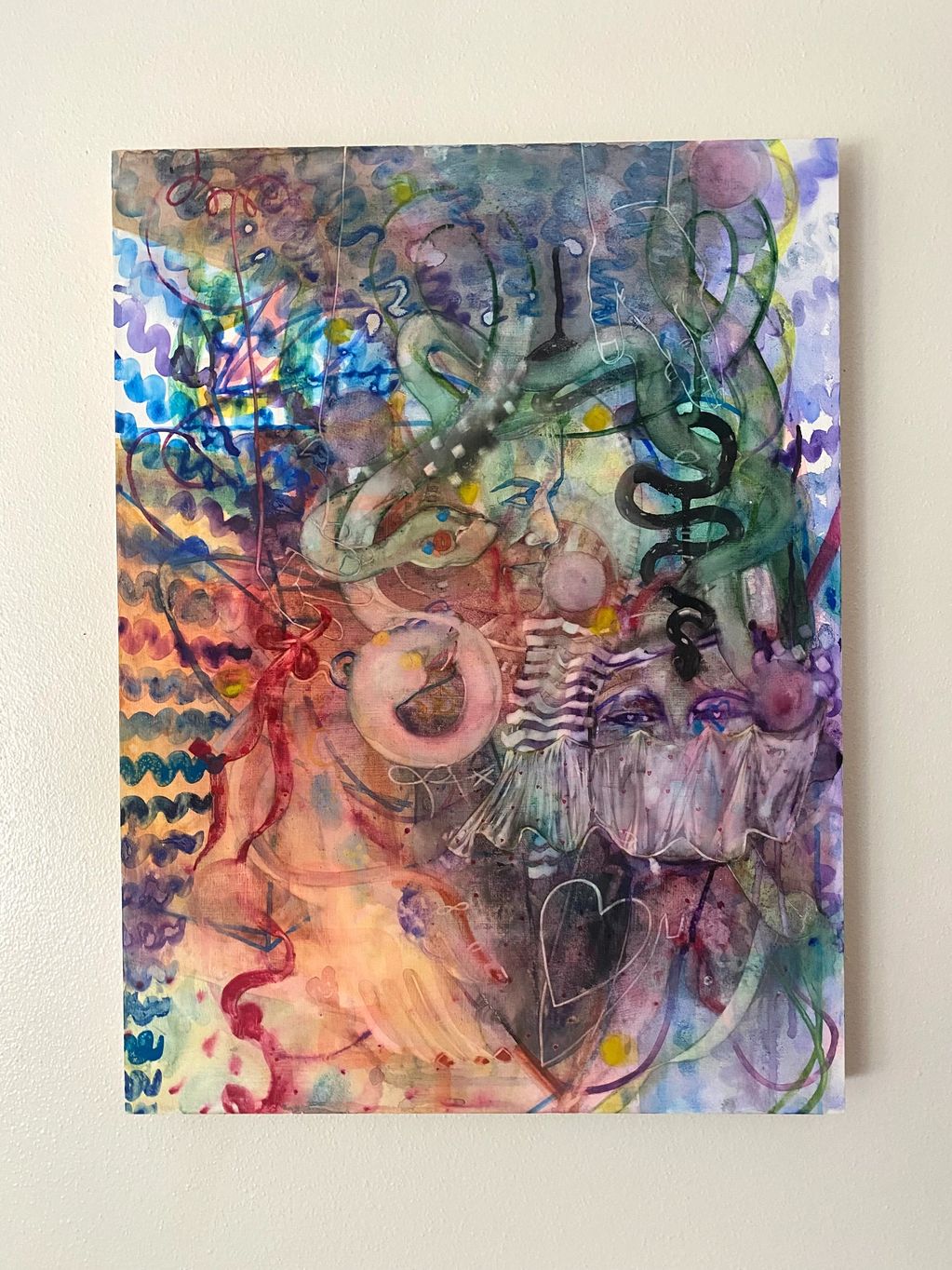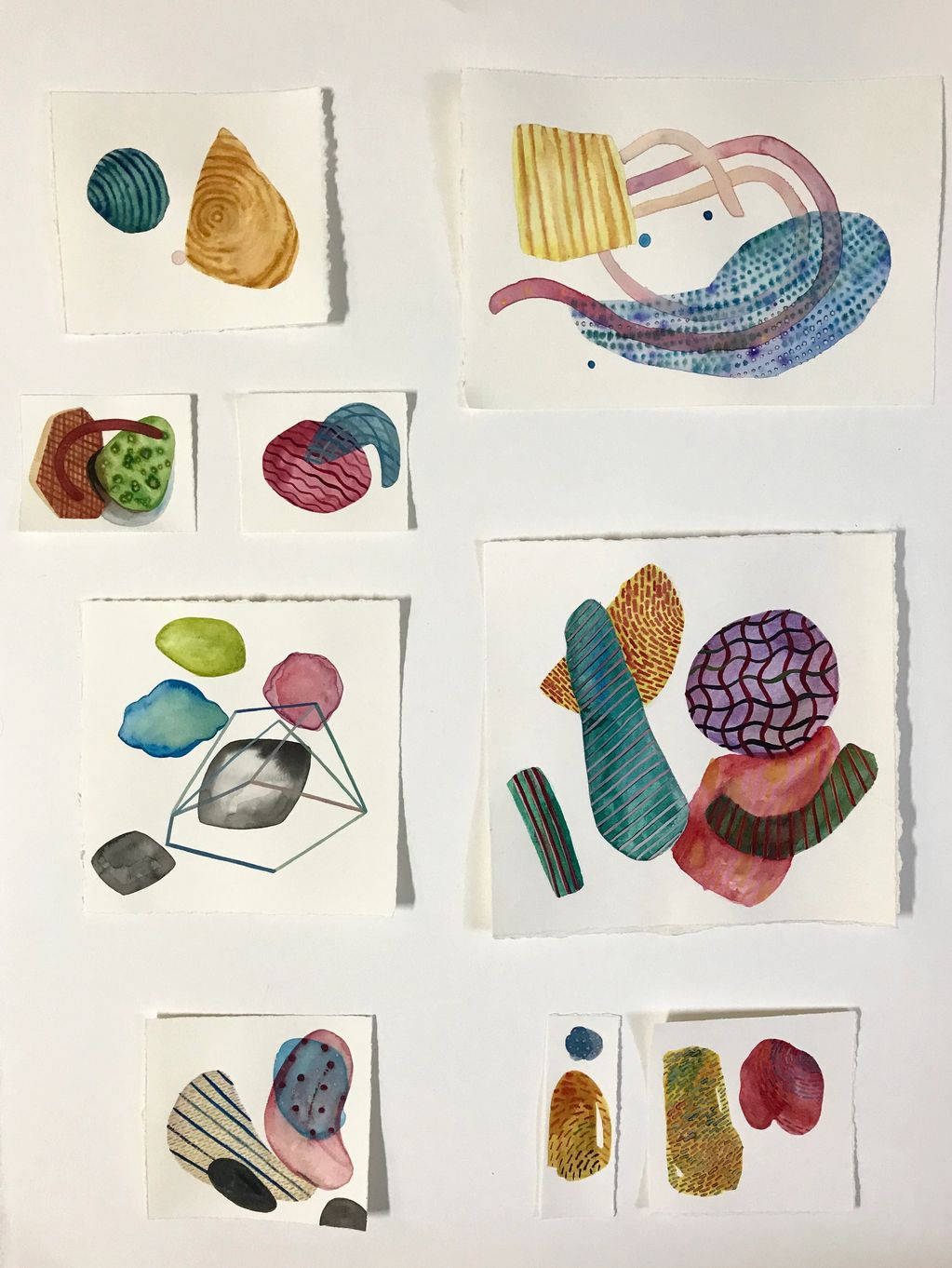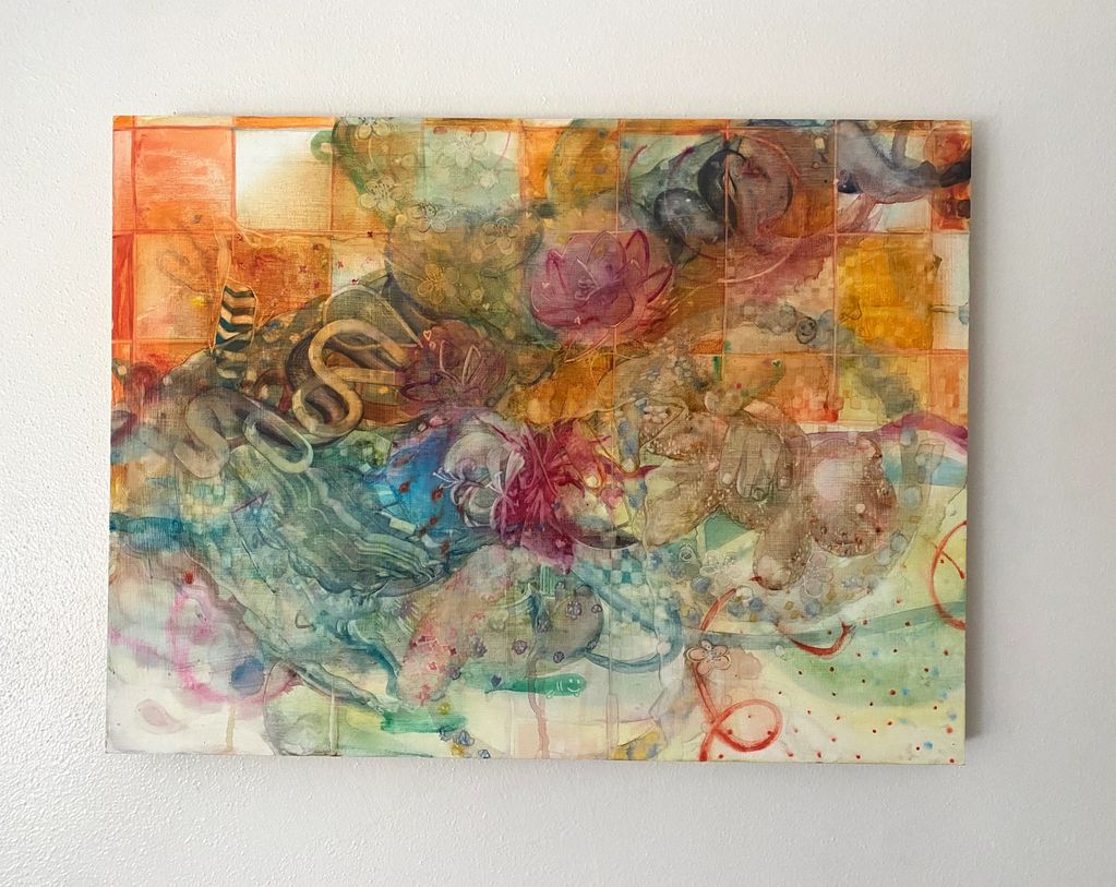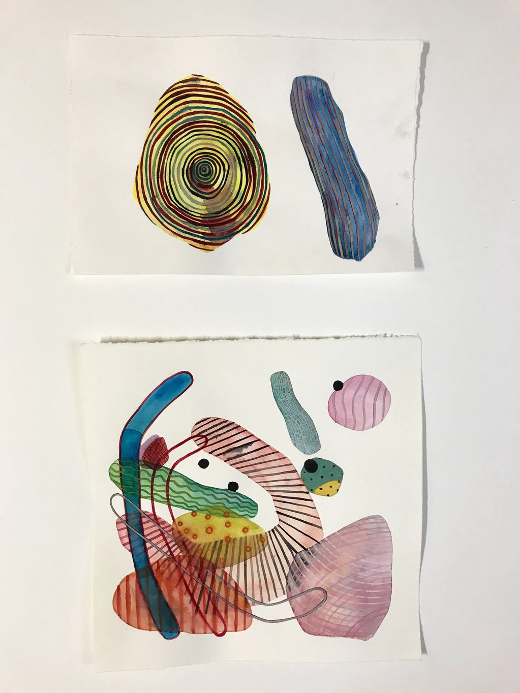 Studio Work - my primary medium is paper, drawing with ink, watercolor and gouache. Cut paper and sculpture and watercolor on panel play with layers and transparency.